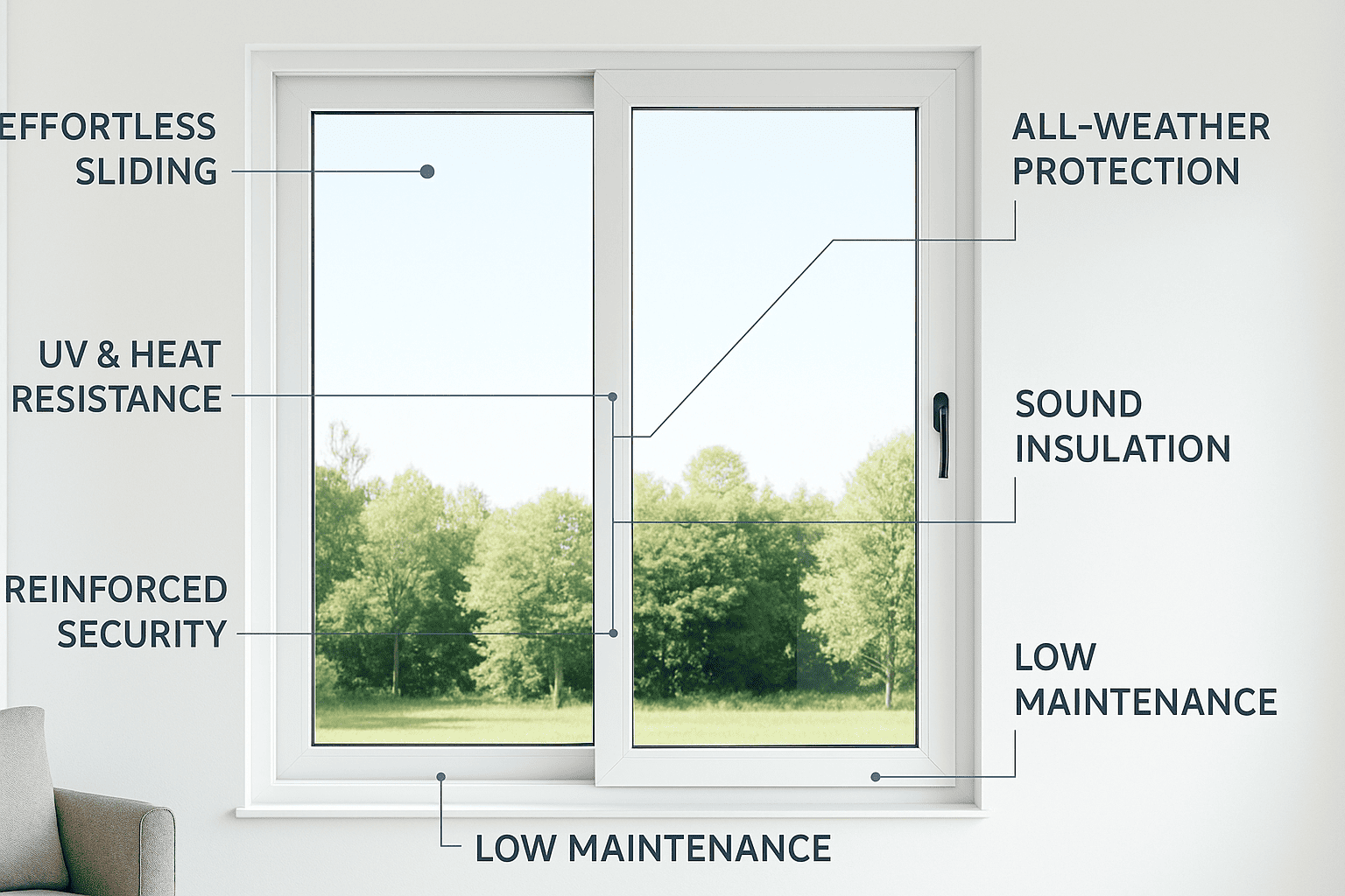 • uPVC Windows & Doors – From casement and tilt-turn to villa and sliding doors, engineered for comfort, noise reduction, and energy savings.
